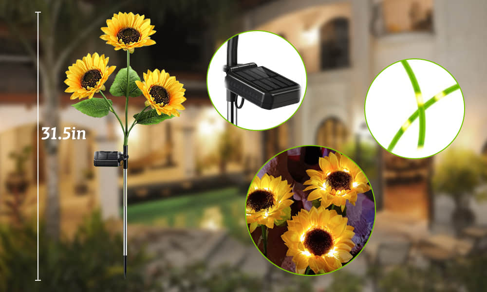 🌻Vibrant, attractive garden décor: Sunflower-shaped lights are lifelike, and difficult to distinguish from real ones.