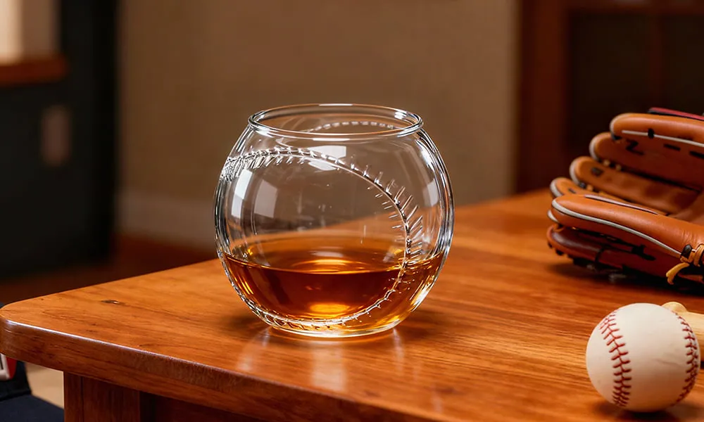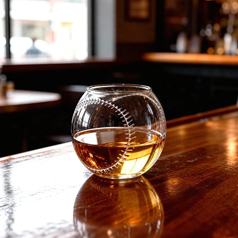 So when I first came across it, it looked like just another plain, clear whiskey glass from afar. But as I got closer, goosebumps ran down my arms — it was a whiskey glass crafted in the shape of a baseball.
