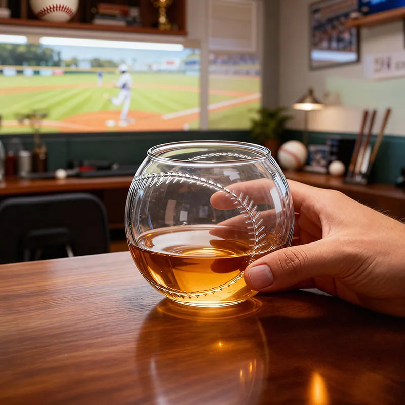 It brings the spirit of baseball into an everyday object—and you can feel the craftsmanship. This isn’t just a printed baseball design; it’s a fully three-dimensional glass, meticulously shaped to mirror a real baseball.