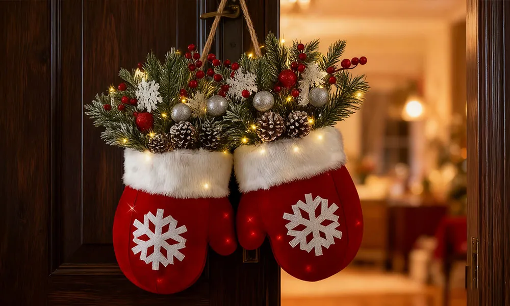 People don’t just hang this wreath — they experience it. Its mitten shape sparks memories of childhood winters, cozy evenings, and the simple joy of warmth shared with loved ones.
