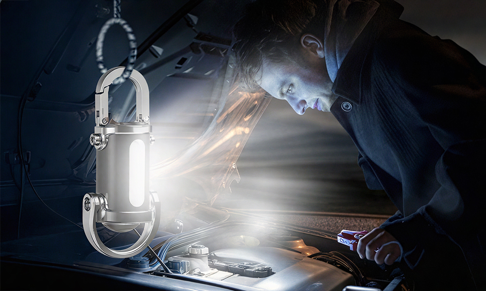 Press the button five times to turn on the side light, place it nearby, and the KeyBlazer instantly becomes a portable work lamp.