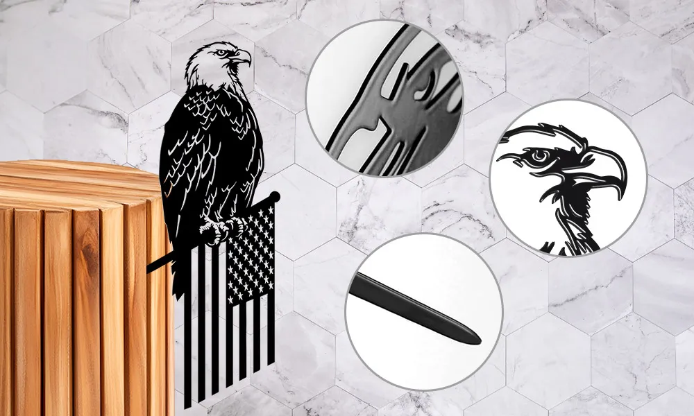 🦅 Attractive, Unique Design: This striking design features a majestic bald eagle perched proudly on the American flag. It's a powerful symbol of freedom, strength, and patriotism that instantly commands attention in any outdoor space.
