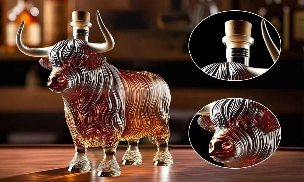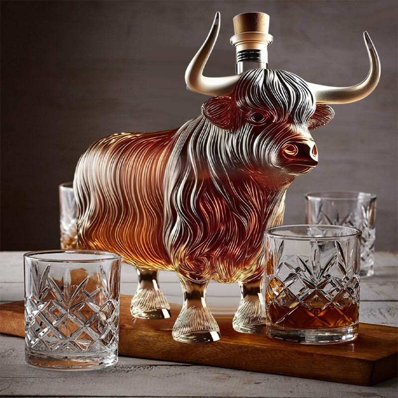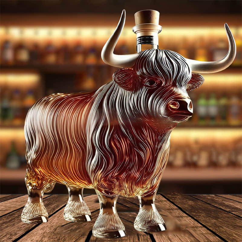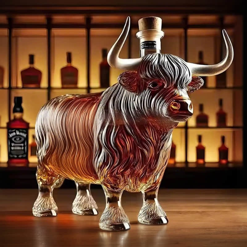 "I've never seen a whiskey bottle quite like this one! The highland cattle design is absolutely breathtaking, and it's the perfect addition to my home bar. It holds my favorite bourbon beautifully, and the craftsmanship is top-notch. I was totally blown away by the sculpted detail—truly a work of art!"