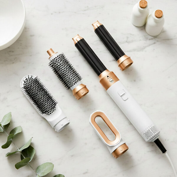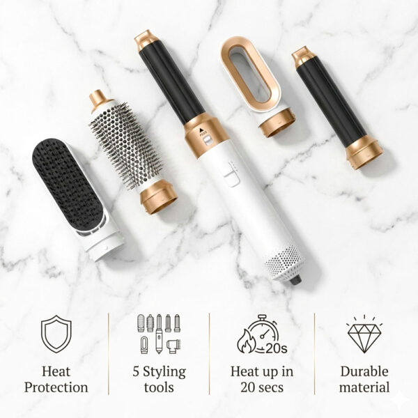 It combines the functions of a blow dryer, round brush, curling tool, straightener, and volumizer—making salon-style hair fast and easy at home.