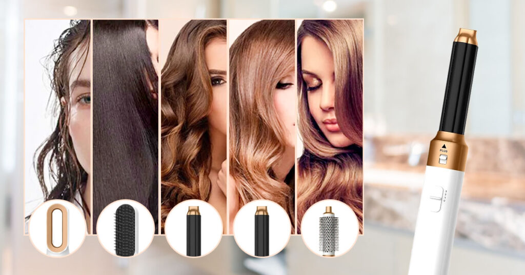 It combines the functions of a blow dryer, round brush, curling tool, straightener, and volumizer—making salon-style hair fast and easy at home.