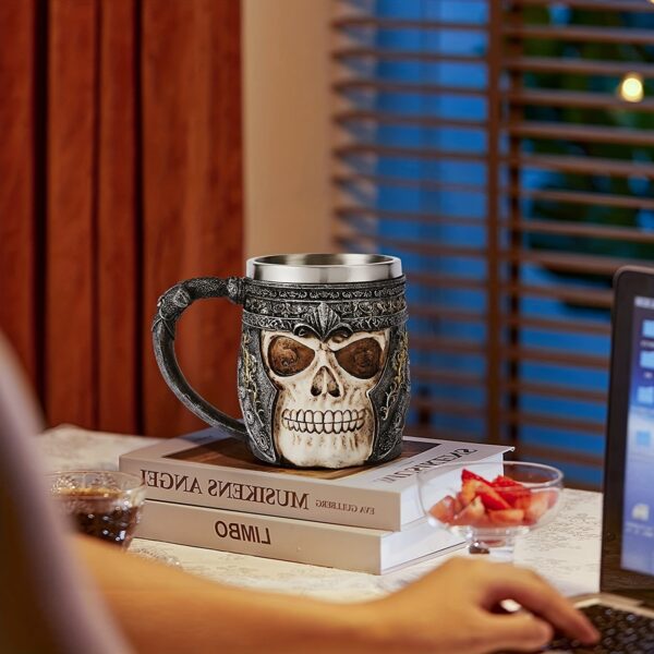 The premium stainless steel liner keeps drinks perfect while the detailed resin craftsmanship commands respect. Stop blending in with boring drinkware. Embrace your dark side, drink like a conqueror, and let every sip remind you that legends aren't born—they're forged.