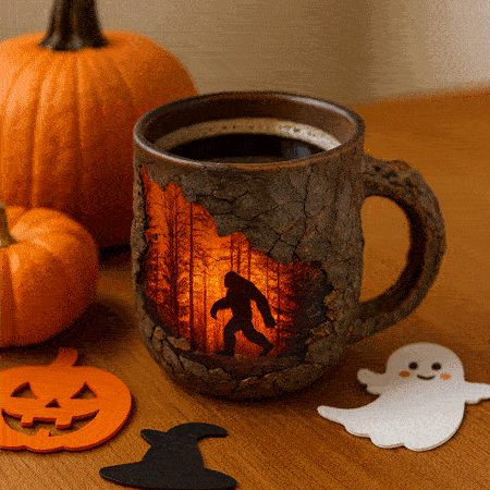 Not your average mug. With cracked bark-like patterns, fiery tones, and the mysterious figure of Bigfoot, it turns a simple drink into something you actually look forward to.