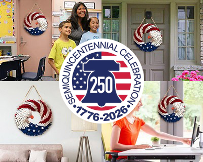 The BraveWings Wreath is a limited-edition, handcrafted patriotic wreath created to commemorate America’s 250th Anniversary. It features a bold eagle centerpiece, red-white-and-blue feather detailing, and symbolic stars—representing freedom, unity, and 250 years of American heritage.
