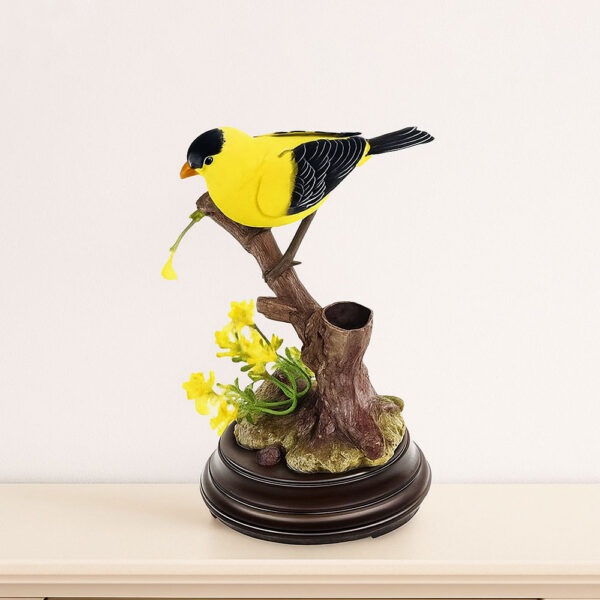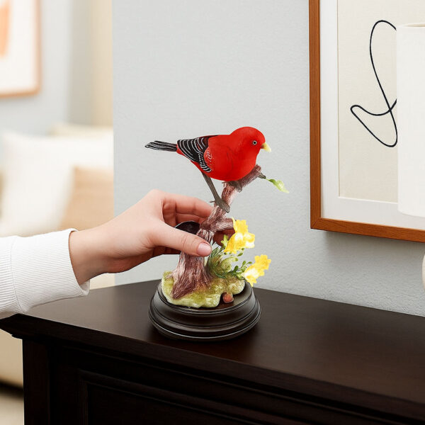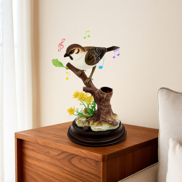 Its lifelike beak opens and closes, the wings flutter gently, and the soft chirps feel like they came straight from a sunlit forest.