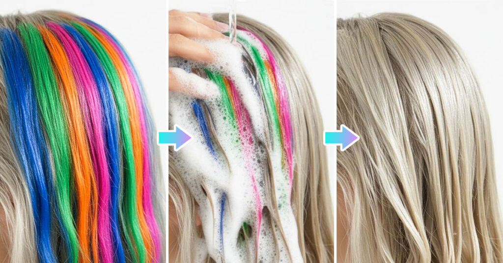 No, it washes out completely with one regular shampoo. Blonde hair actually shows the color more vibrantly, but it comes out just as easily as it does on darker hair. Just use their normal shampoo and water—no special color-removing products needed.