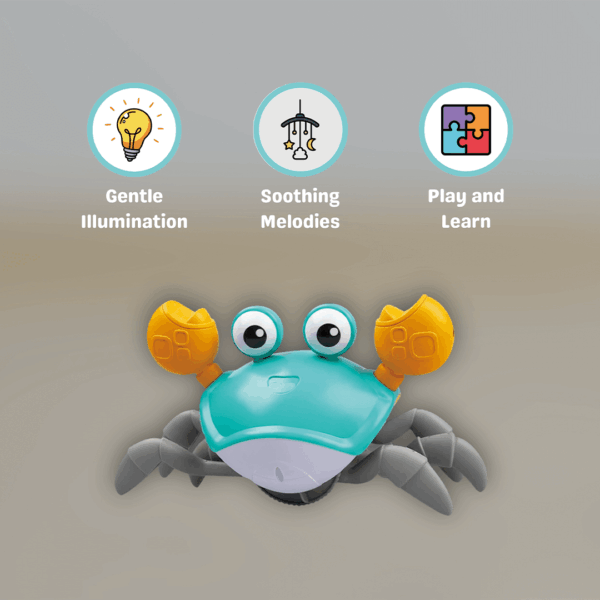 The CrabbiCrawler has built-in motion and proximity sensors. When a baby’s hand gets close, the toy gently scuttles away — prompting curiosity, engagement, and movement. It’s like a friendly little playmate that keeps the game going.