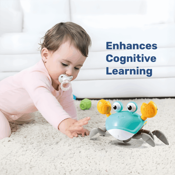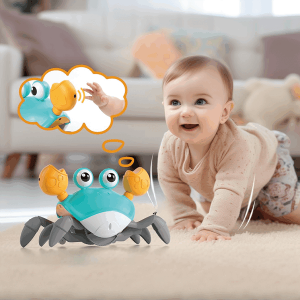 Yes! Babies are naturally drawn to lights, movement, and playful sound, and the CrabbiCrawler combines all three in a dynamic way. Unlike static toys, it stays interesting by responding and changing direction.