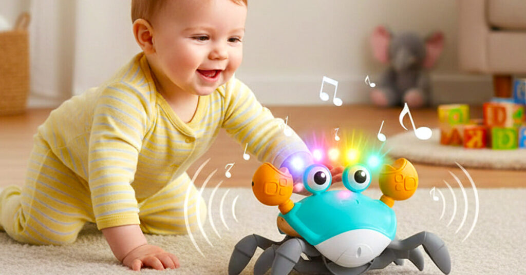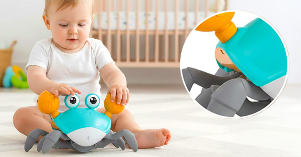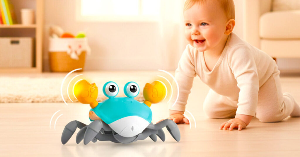 Yes! Babies are naturally drawn to lights, movement, and playful sound, and the CrabbiCrawler combines all three in a dynamic way. Unlike static toys, it stays interesting by responding and changing direction.