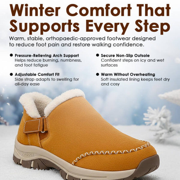 CushionMax boots are designed with proper arch support, shock-absorbing cushioning, and stability features that standard winter shoes often lack. Instead of being flat or overly stiff, they distribute pressure evenly across your foot—helping reduce numbness, fatigue, and joint strain during long walks or hikes.