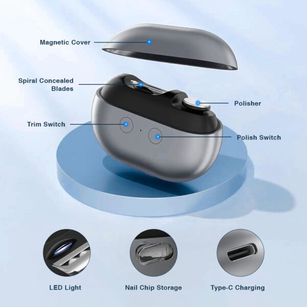 Its rounded safety blades trim cleanly while the polishing head finishes the job, leaving nails smooth and salon-perfect.