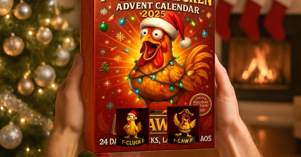 It’s a 24-day advent calendar filled with mini, hand-painted collectible rooster figurines, each with its own hilarious pose and personality. Think of it as a countdown to Christmas… with maximum laughter built in.