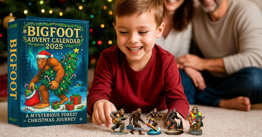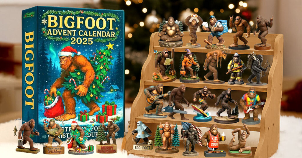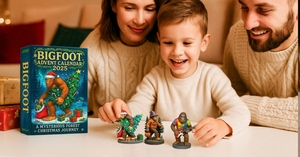 It’s a limited-edition advent calendar featuring 24 unique, collectible acrylic Bigfoot figurines. Each day of December reveals a new Bigfoot character in a funny, festive, or imaginative scene — turning your holiday countdown into a daily moment of laughter and discovery.