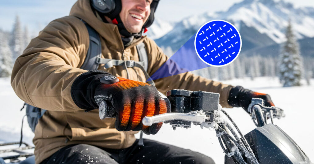The gloves use advanced multi-zone heating elements that run along the fingers, palm, and hand core. When powered on, they distribute warmth evenly within seconds, helping maintain circulation and mobility even in freezing temperatures.