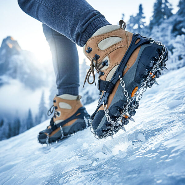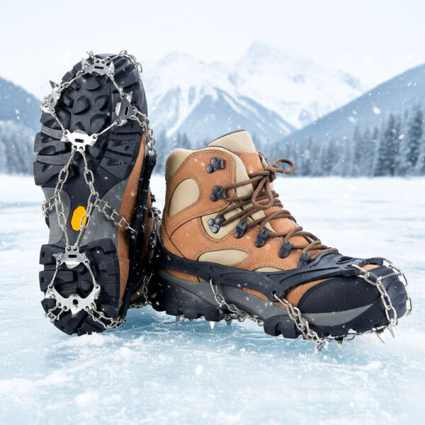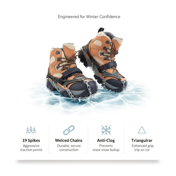 These aren't designed for running—the chains and spikes create an unstable platform at running speeds, and you risk ankle injuries from the uneven distribution of weight. For winter running on icy paths, you want specialized running traction devices with smaller, more numerous studs that allow your foot to flex naturally. These crampons are built for deliberate walking and hiking where you're placing each foot carefully. If you try to jog in them, the chains can shift, spikes can catch on each other, and the whole system becomes a tripping hazard. Stick to walking pace, and look into trail running spikes if you want to maintain your running routine.