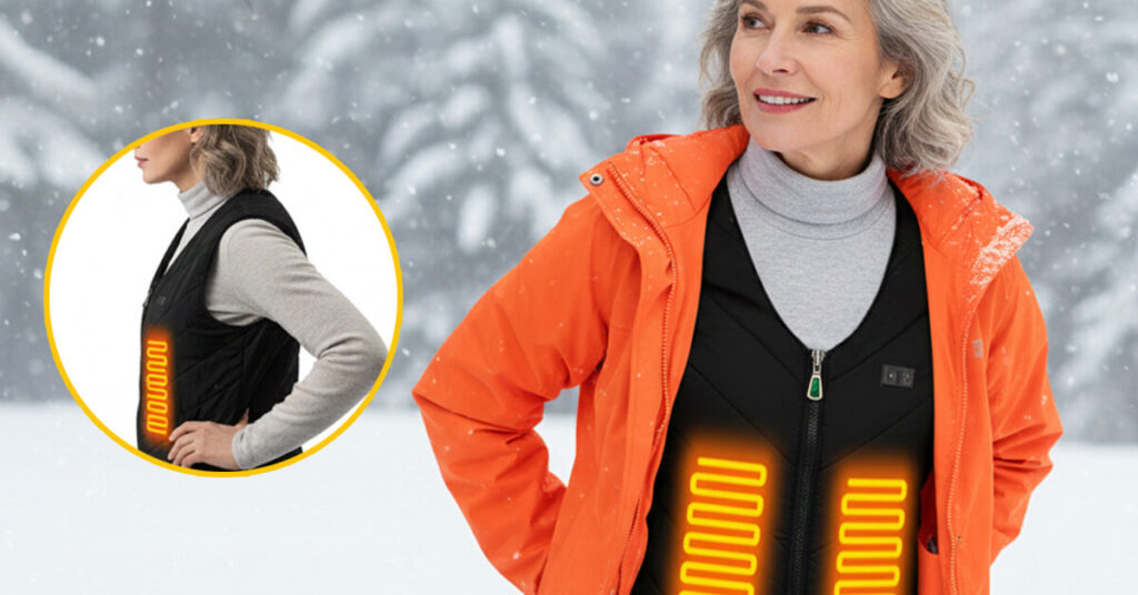 The InvisibleWarm Vest includes four precision heating zones:
