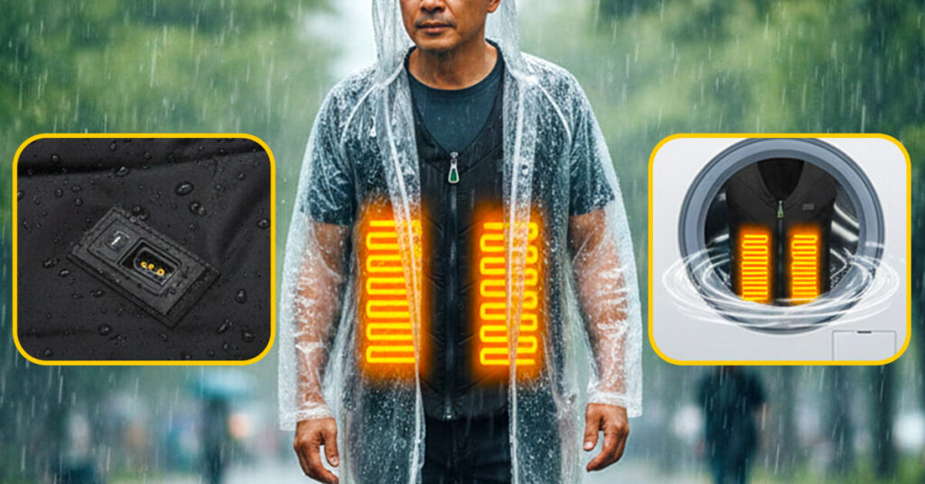 The heating panels are completely sealed with waterproof insulation, and the USB connection is protected too. When the vest needs cleaning, just remove your power bank and throw it in the washing machine with your regular clothes. No hand-washing required. No special detergent. It comes out clean and ready to heat again.