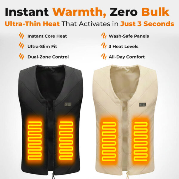 This vest is as thin as the undershirt you're already wearing. You can bend, stretch, reach, and twist without feeling restricted or bulky. Whether you're driving, working, or chasing after kids, the flexible carbon fibers move naturally with your body. You stay warm without that stiff, puffy feeling that makes every movement awkward.