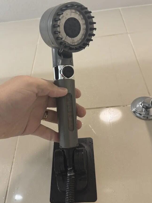 Want to stop showering in chlorine and chemicals? This shower head uses three powerful filters to remove 96% of nasty stuff from your water - including chlorine, heavy metals, and even microplastics. Think of it as having bottled water quality for your shower.