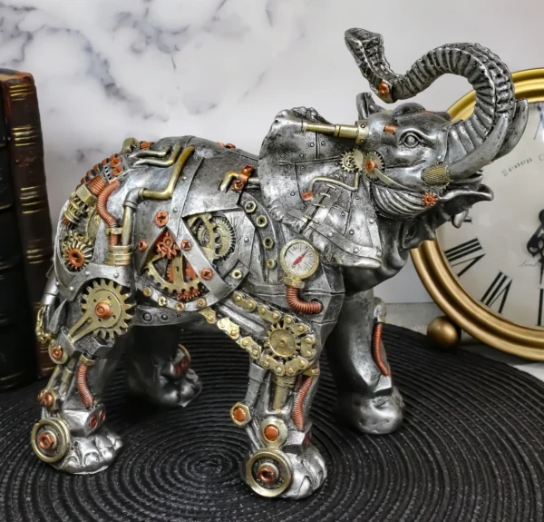 Feel the difference when you run your fingers across the surface. Every rivet has been carefully placed, every bolt meticulously detailed to create that rough, industrial feel that makes steampunk art so captivating. This isn't smooth plastic trying to look metal—it's textured craftsmanship that gives the sculpture real depth and character. The raised details catch shadows and light differently throughout the day, making it look alive on your shelf.