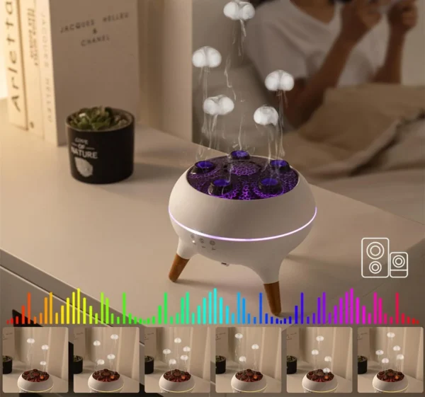 The built-in sound pickup technology makes the jellyfish-shaped mist dance to any music playing nearby. Slow ballads create gentle swaying motions while upbeat tracks trigger energetic pulsing patterns. Each song creates a unique visual show, turning your playlist into an interactive light and mist performance that matches the rhythm perfectly.