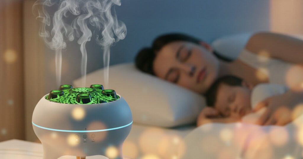 The LED lights are designed to be gentle and can be dimmed or turned off completely while keeping the mist function active. Many users find the soft, slow color transitions actually help them fall asleep faster, similar to a night light.