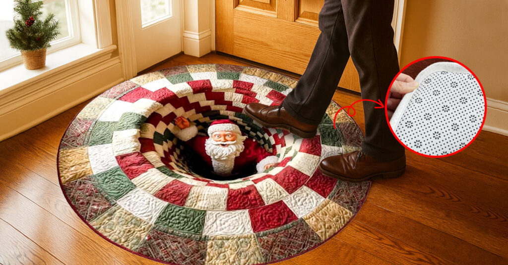 It’s a soft, high-quality, crystal-velvet rug featuring a lifelike 3D Santa design that appears to pop right out of the floor. It’s designed to bring instant Christmas magic, laughter, and festive charm into any room.