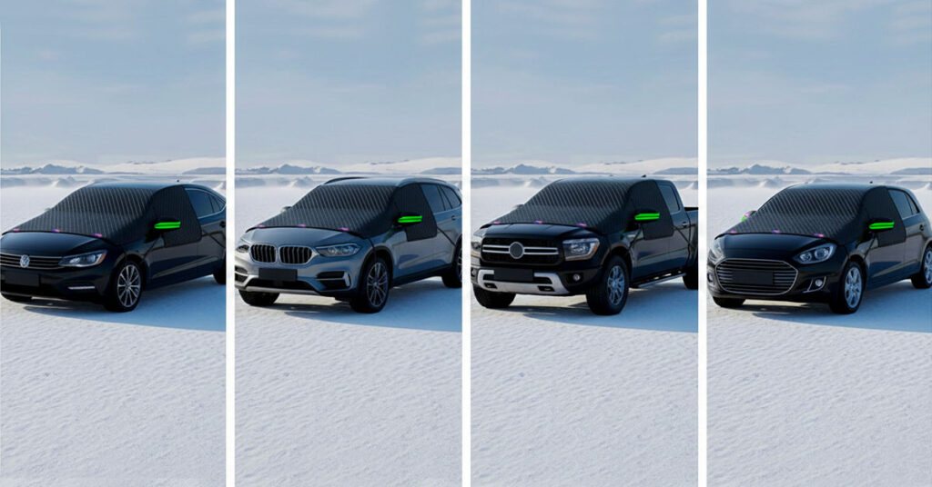 LiftOff is designed as a universal fit, working with most sedans, SUVs, trucks, and hatchbacks. The elastic straps and flexible coverage adapt to different windshield sizes without needing exact measurements.