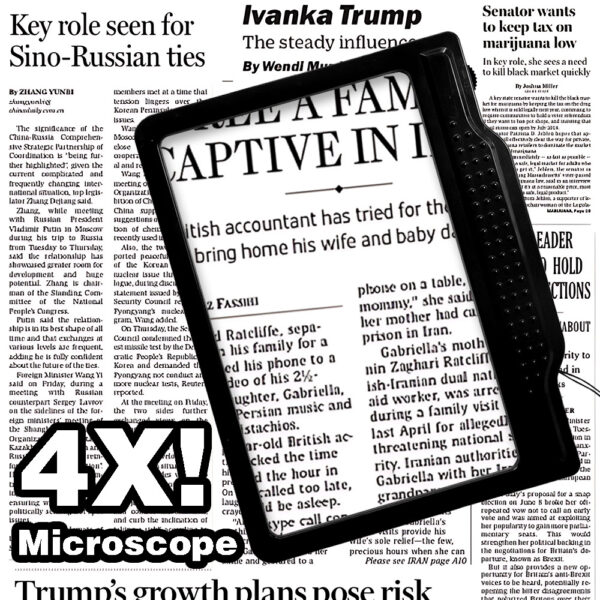 Absolutely. The 4X lens works on anything that has fine detail — prescription bottles, the small-print on contracts, sewing patterns, crossword puzzle grids, stamps, coins, or even inspecting a splinter. It's essentially a hands-on magnifier for any moment in daily life where your eyes need a little extra help.