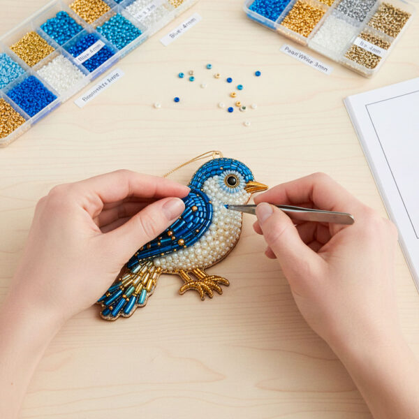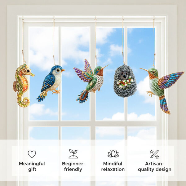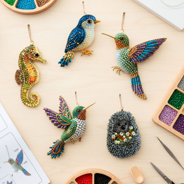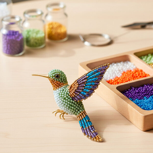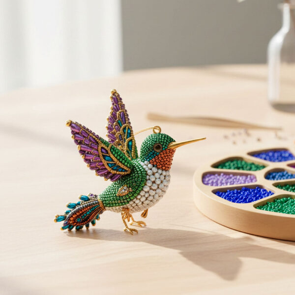 It’s a DIY beaded art kit that lets you create a shimmering hummingbird (or other symbolic animals) from high-quality, color-coded beads. The finished piece becomes a delicate, light-catching ornament or décor item.