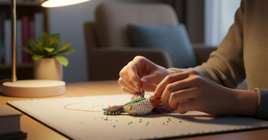 Something magical happens when multiple generations sit around the same table, each working on their own hummingbird while gentle conversation flows between the quiet bead-threading moments. Mothers and daughters find themselves talking about things they never expected to share, while the rhythmic clicking of beads creates a soundtrack for stories, laughter, and comfortable silences that become treasured family moments.
