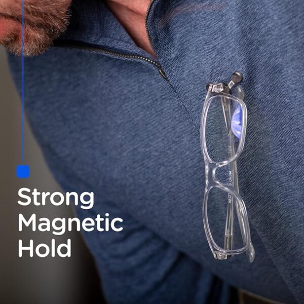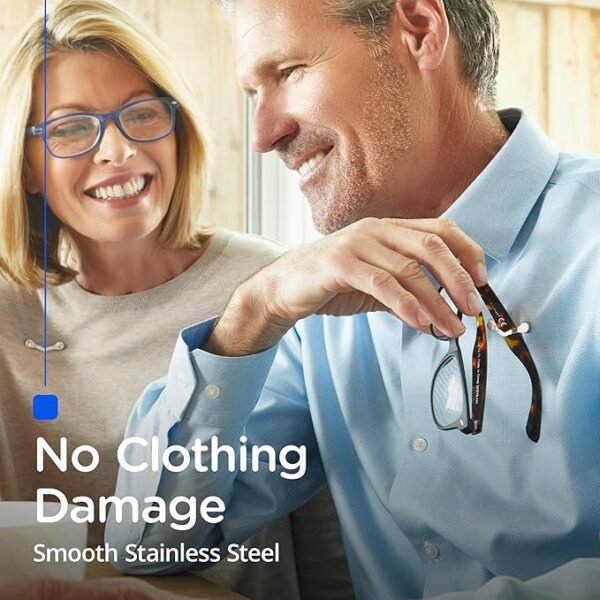 That moment when your glasses slip off and hit the floor — it's not just annoying, it's expensive. The strong magnet keeps your frames locked in position on your shirt, so they're not sliding, swinging, or crashing down every time you bend over or move around.