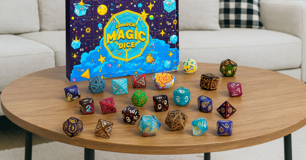 You'll never find the same die twice in your calendar. Every single piece is carefully selected to ensure your collection grows with 24 completely different dice. This means you're building a diverse set that covers various gaming needs, from standard six-siders to specialty dice you might not have tried before.