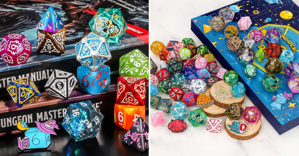 Your collection spans the full spectrum of dice materials that serious gamers love. Some days you might discover a lightweight acrylic die with swirled colors, other days a satisfying metal die that feels substantial in your hand, or a smooth resin piece with embedded sparkles. Each material offers a different rolling experience and visual appeal.