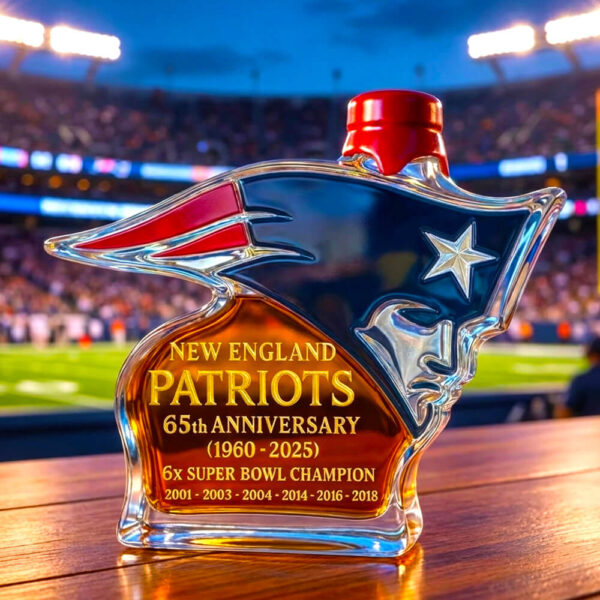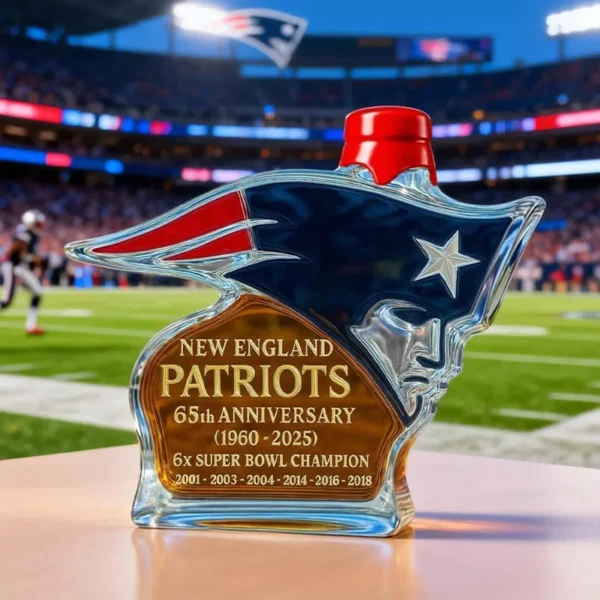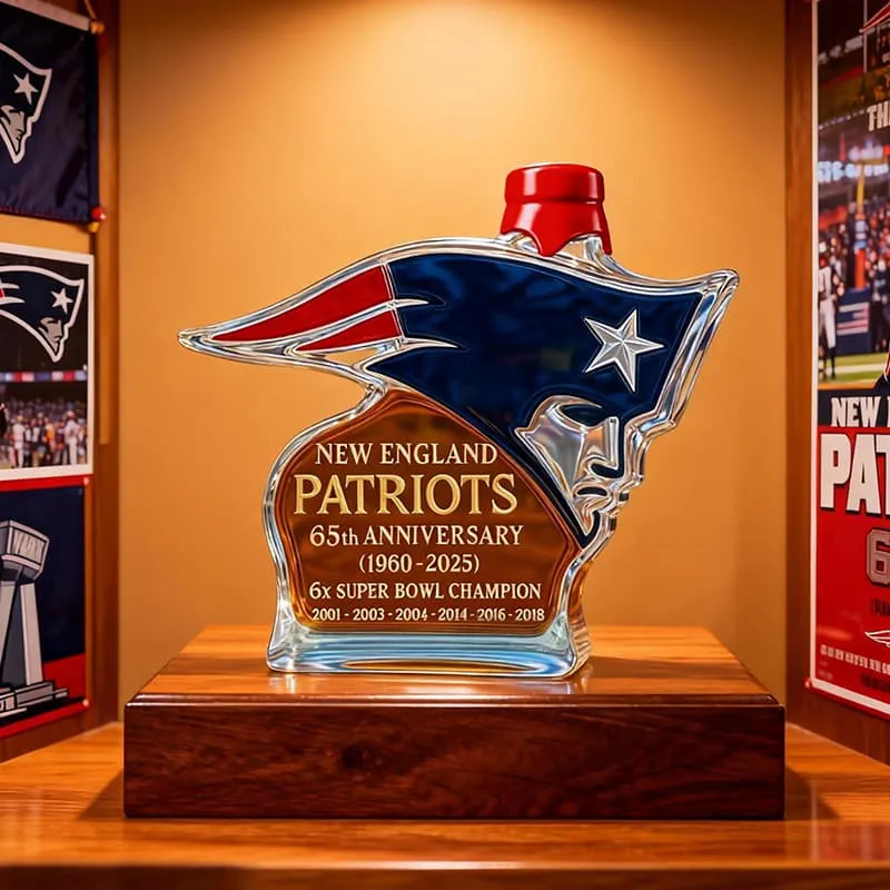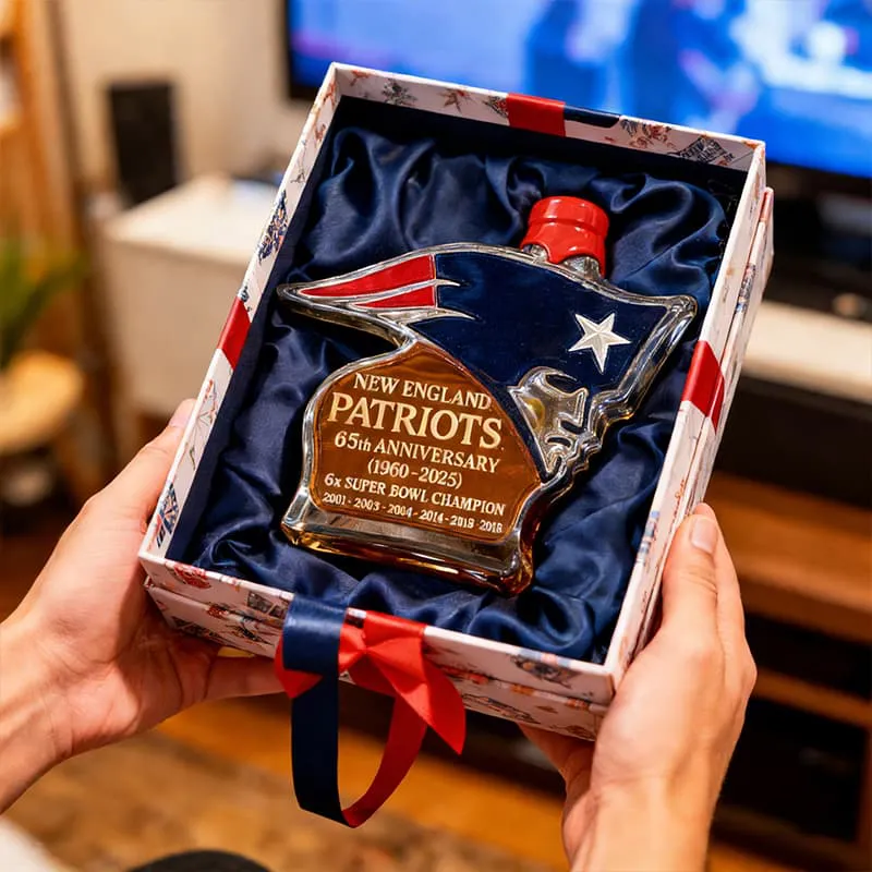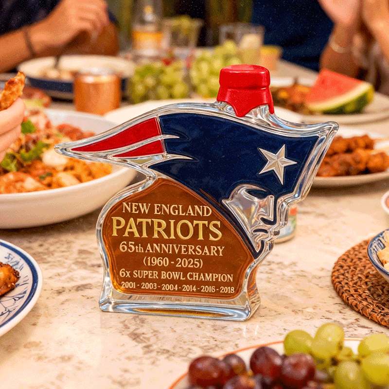 Currently, the Patriots Spirit bottle comes with the standard design featuring the team logo, 65th anniversary marking, and championship years. Customization with personal names or messages is not offered at this time. However, many customers have mentioned adding a personalized gift note at checkout or pairing the bottle with a handwritten card to make the gift more personal without altering the collectible design.