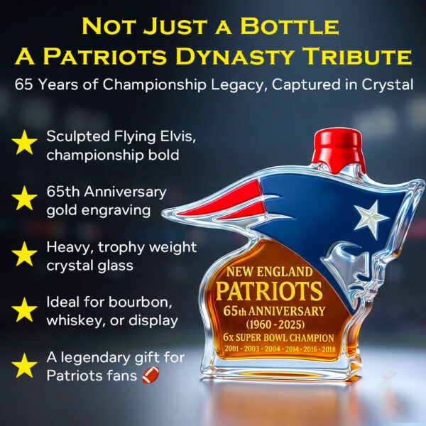 A limited-edition tribute, crafted like a trophy. Every pour becomes a ritual. Every sip recalls roaring Foxborough crowds, Belichick grit, Brady domination, and clutch-play greatness.
