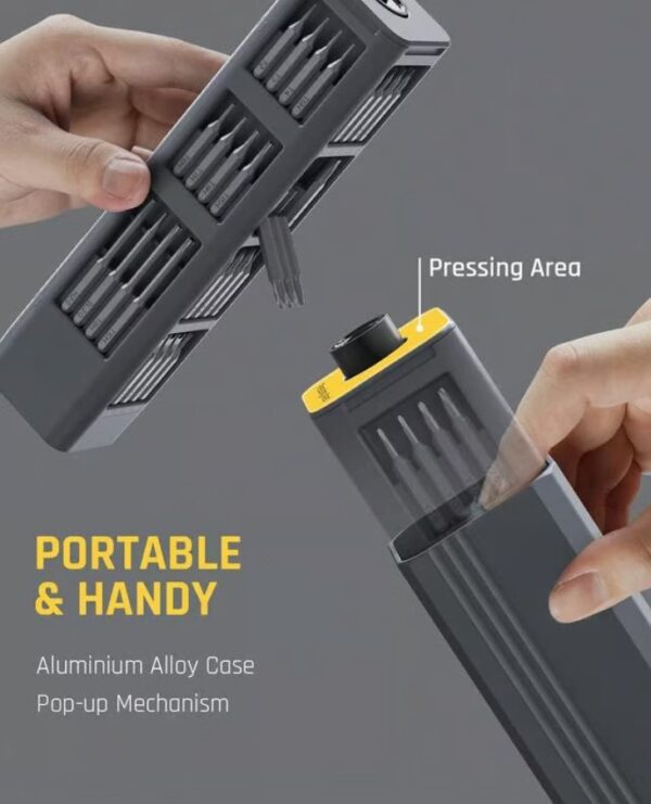Both the screwdriver tip and all bits feature strong magnets that create a satisfying click when connecting. This means no more fumbling with tiny screws in tight spaces or watching bits roll under furniture mid-repair. The magnetic grip holds screws securely during positioning, especially helpful when working one-handed or in awkward angles where gravity isn't your friend.