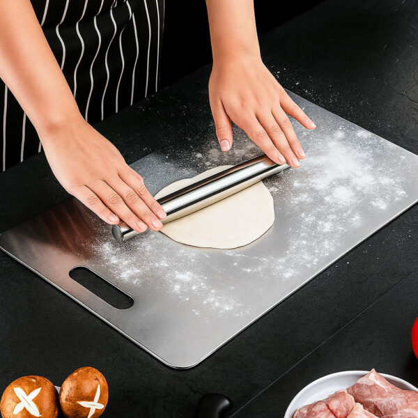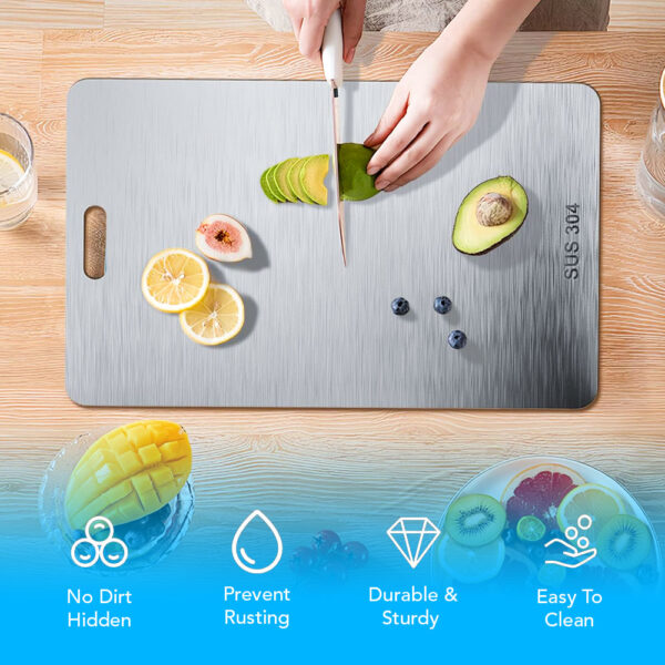 Unlike plastic and wood that trap germs in knife grooves, this stainless steel surface stays completely bacteria-free. The non-porous material prevents harmful microorganisms from finding places to hide and multiply, giving you a genuinely sanitary cutting surface every single time you cook.