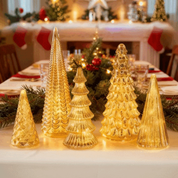 No two trees look exactly alike. Some have scalloped edges that catch light like ripples on water. Others feature ribbed textures or faceted surfaces that refract the glow into dancing sparkles. These handcrafted-style patterns mean the light doesn't just sit there—it moves, shifts, and creates living reflections across the room. The variety keeps your display interesting from every angle, and ensures each tree contributes its own character to the collection.
