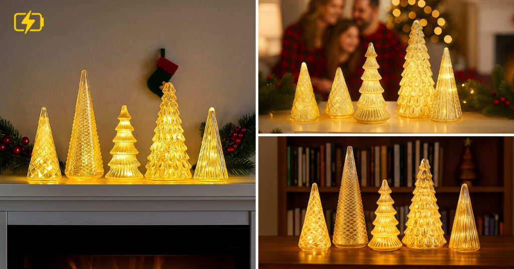 The RadiantPines are battery-powered, so there are no cords or outlets required. Just pop in the batteries, and you’re free to place them anywhere — mantels, tables, windowsills, or entryways.
