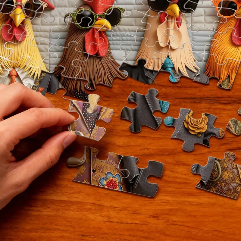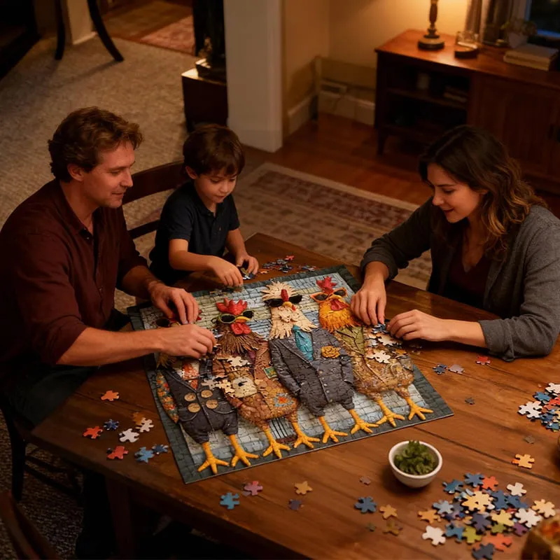 Meet the Runway Roosters Puzzle — a witty, beautifully crafted jigsaw puzzle that turns quiet nights into moments of laughter and bonding.