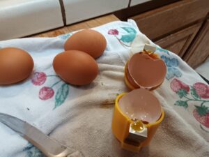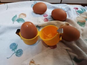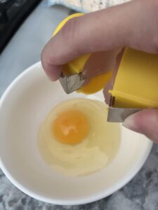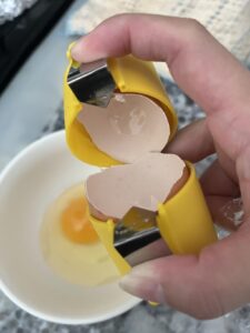 Works perfectly with cold eggs straight from the fridge! In fact, cold eggs often crack cleaner than room temperature ones. Many bakers prefer using it with cold eggs for easier yolk/white separation.