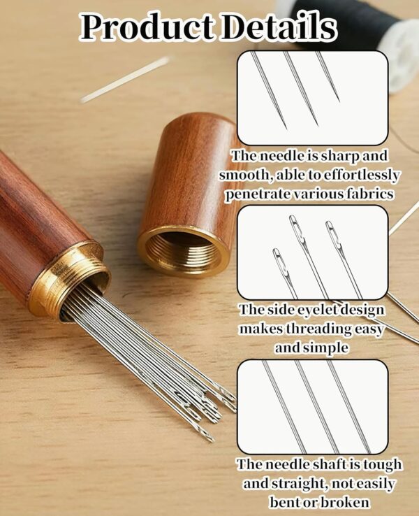 That depends on the age and supervision level. The needles are sharp — sharp enough to pierce fabric cleanly, which also means they need to be handled with the same care as any sewing needle. For older kids, say 10 and up, with an adult nearby, they're very manageable. The side-open threading actually makes them less frustrating for kids than standard needles, which means less fidgeting and fewer accidents from repeated failed threading attempts. Just make sure the rosewood case stays closed when not in use.