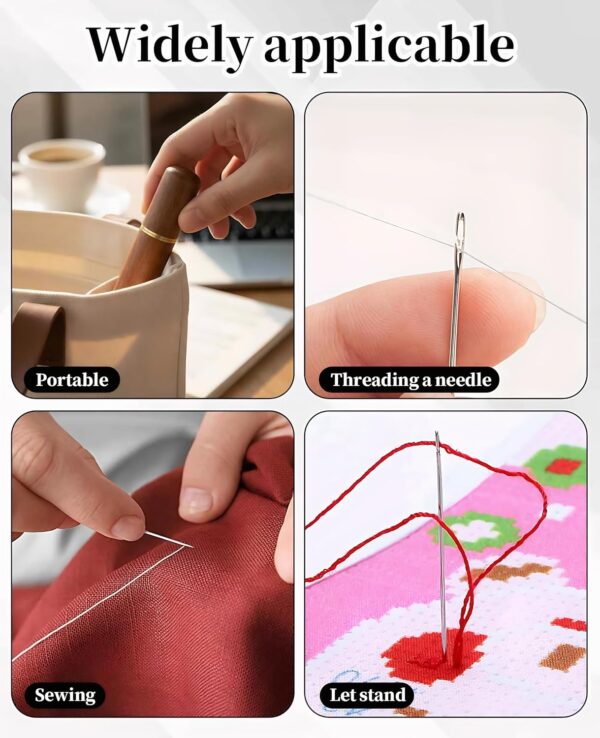 That slipping issue usually comes down to two things — a poorly cut slot that doesn't grip the thread properly, or using a thread that's too thin for the needle size. The slots on these needles are designed to hold the thread once it's seated, so it doesn't work itself loose with every stitch. If you do find slipping happening, try the next size down in the kit — a snugger fit between thread and needle slot makes a real difference.