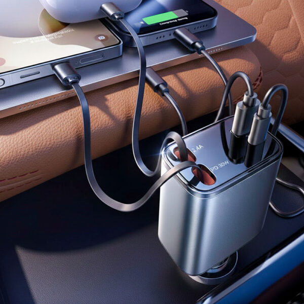 The cables are reinforced with a durable outer sheath that can handle the occasional hard tug—think kids grabbing it quickly or forgetting it's plugged in when exiting the car. That said, the retraction mechanism works best with a controlled pull. If you pull too aggressively and hold it, the cable will simply stay extended until you release and let it retract. The real danger is slamming the car door on the cable while it's extended outside the vehicle—this could damage any cable. Just unplug before exiting and let it retract, which takes less than a second anyway.