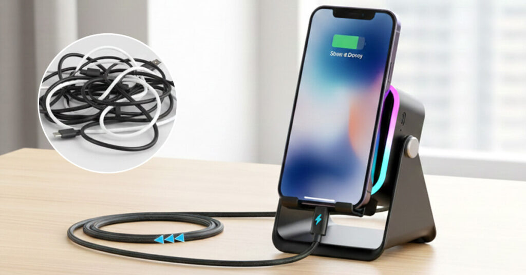 Clean desk, clear mind—except when there's a mess of charging cables, aux cords, and adapter wires everywhere. This setup eliminates the cable chaos. Your phone sits on the stand wirelessly streaming music, and if it needs charging, just one cable does the job. No untangling knots before meetings, no accidentally yanking cords when reaching for your coffee. Just a cleaner workspace that actually looks the way you want it to.